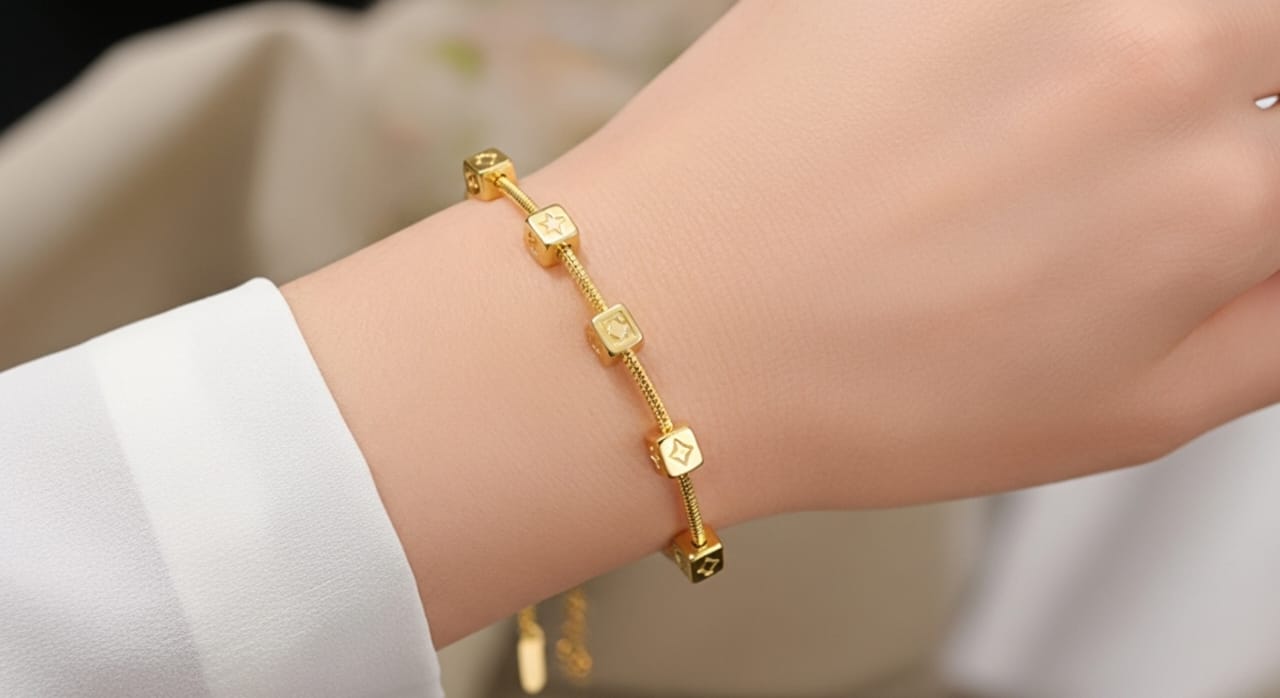 Design: Sleek adjustable chain bracelet with cube-shaped accents.